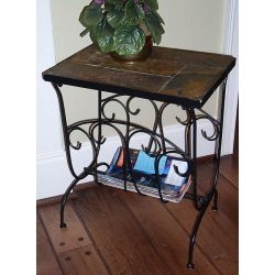- Tuscan Style Metal Magazine End Table with Slate Top- Living Room